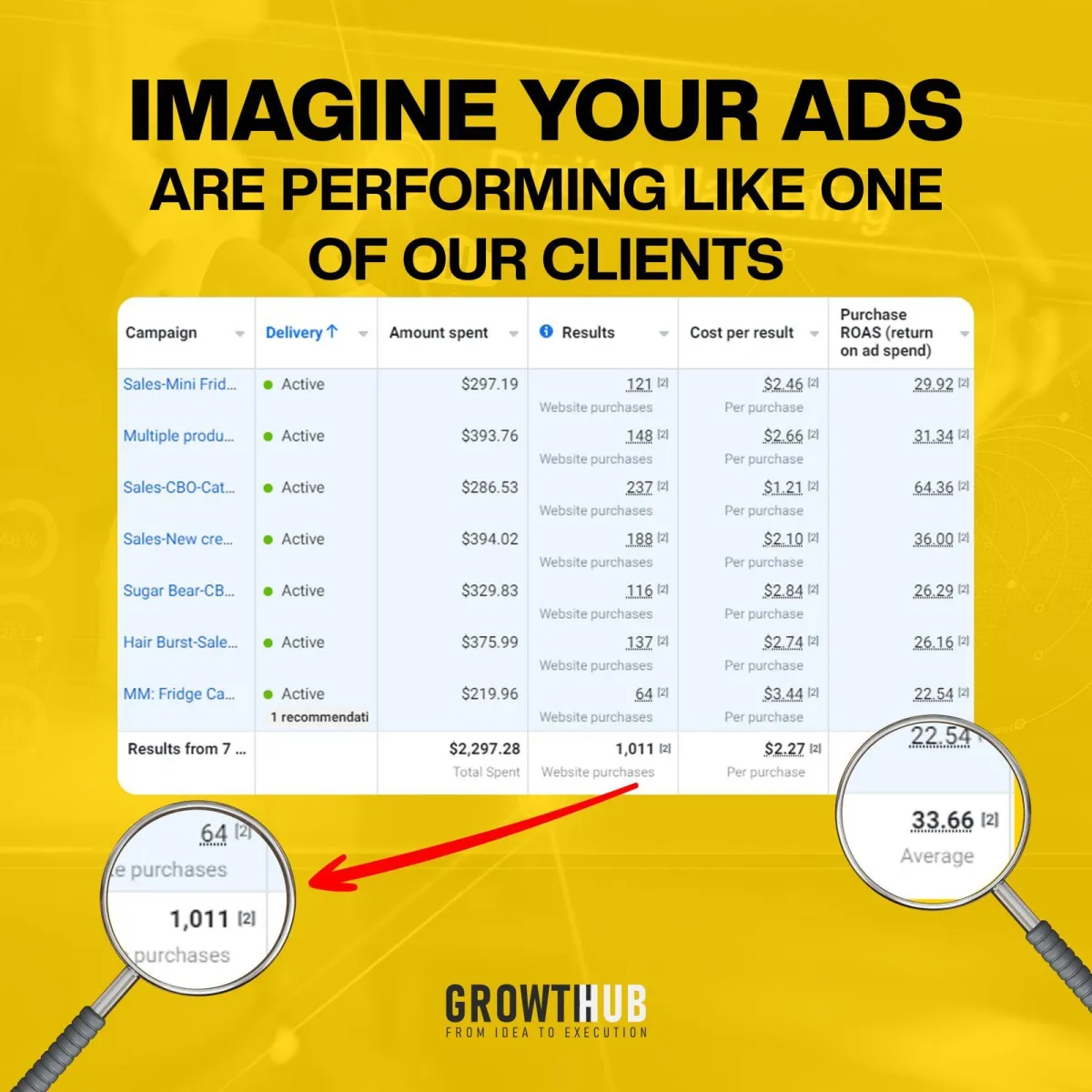 At Growth Hub, we don't just run ads; we revolutionize them. Our high converting ad library and advanced strategies in Facebook and Google advertising set us apart.